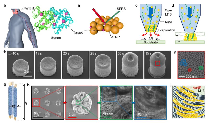 Поточна діагностика раку щитовидної залози спирається на цитологічну біопсію тонкоголкою, що може призвести до неоднозначних результатів та ускладнень. Незважаючи на десятиліття досліджень, для цього захворювання не було підтверджено жодного специфічного біомаркера. Дослідницька група Пусана усунула це обмеження, застосувавши SERS до кластерів наночастинок золота (AuNP), виготовлених безпосередньо з сироватки крові пацієнта за допомогою процесу 3D-друку на основі випаровування. Ці нанокластери підсилюють сигнали Рамана, що генеруються біохімічними сполуками у зразку, що дозволяє алгоритмам глибокого навчання класифікувати випадки з позитивним результатом на рак та здорові випадки без необхідності сигналу біомаркера.