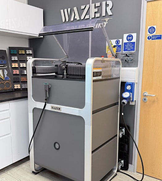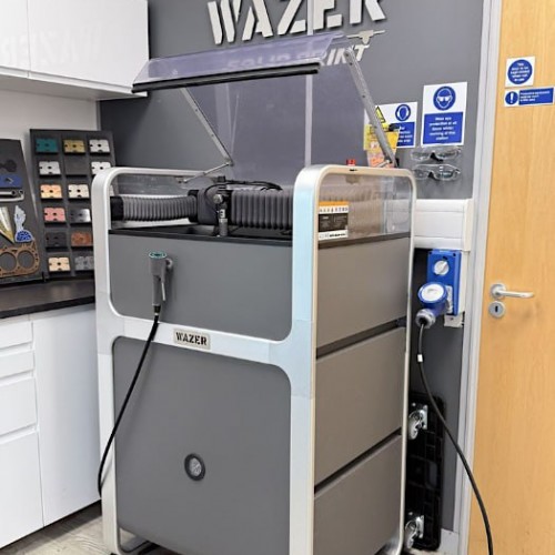 Найновіша система WAZER оснащена новою автоматичною системою збору абразиву, що спрощує та підвищує ефективність обслуговування. Це забезпечує до 90 хвилин безперервного різання, порівняно з 60-хвилинною безперервною роботою WAZER Desktop. Крім того, новий WAZER Pro надає пріоритет доступності. Його інтуїтивно зрозумілий інтерфейс користувача та просте у використанні програмне забезпечення WAM спрощують експлуатацію, а безпроблемне обслуговування та підтримка клієнтів усувають поширені перешкоди.