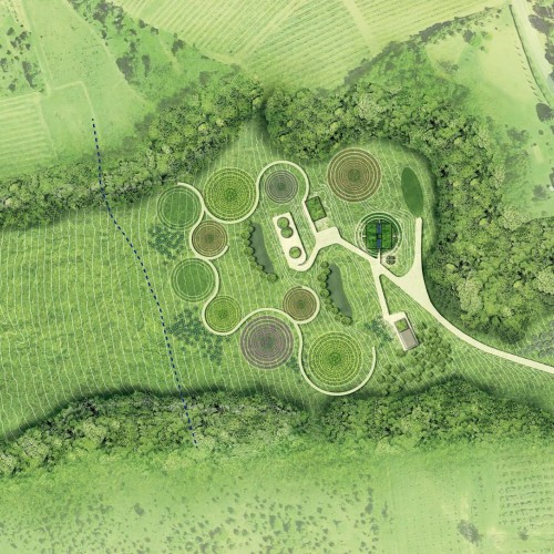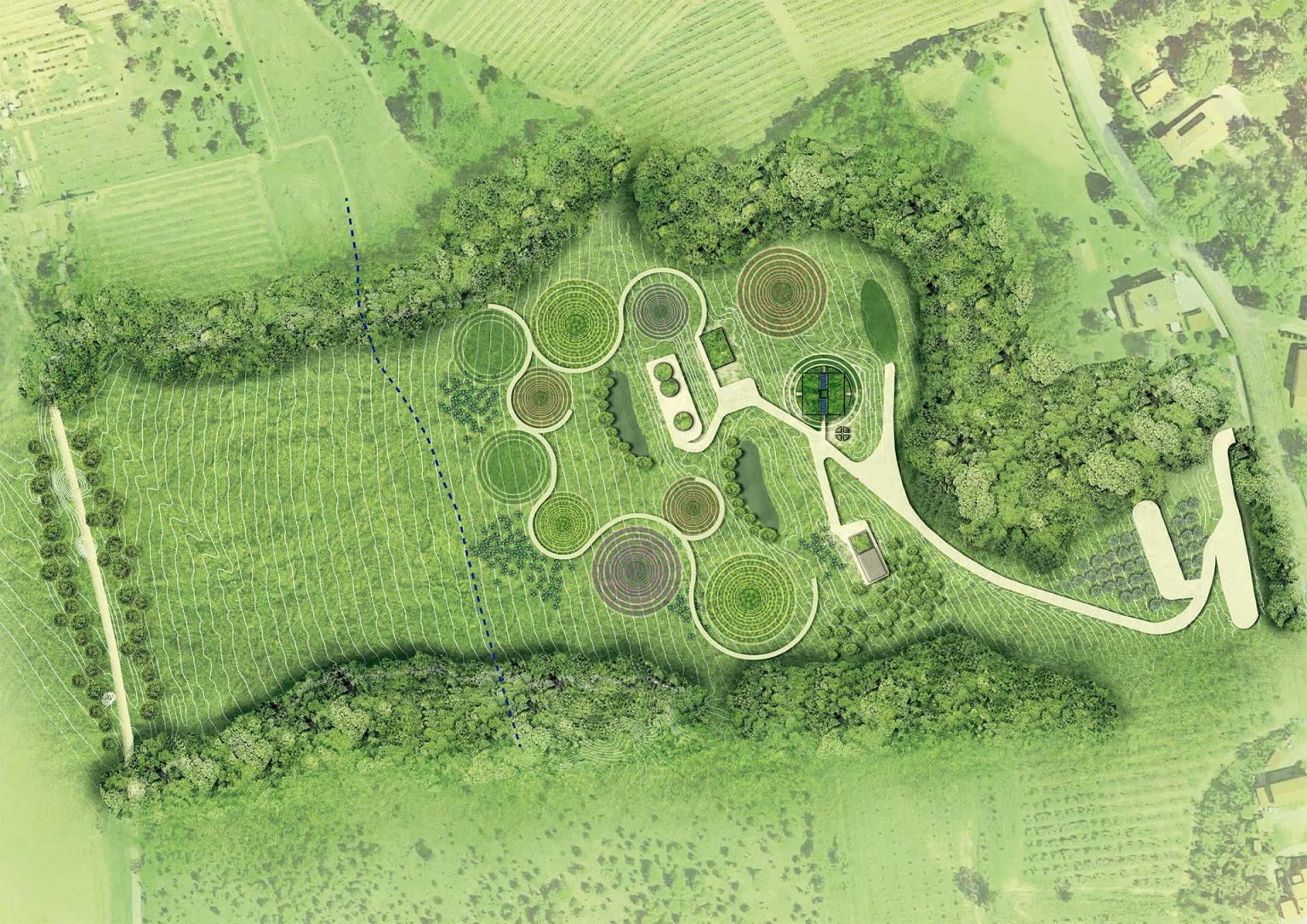 Сама локація - це колишні необроблювані сільськогосподарські угіддя, які зараз проходять екологічну регенерацію. Понад 500 старовинних фруктових дерев та 50 000 лікарських та ароматичних рослин буде висаджено в рамках перетворення ділянки на лікарський ботанічний сад.